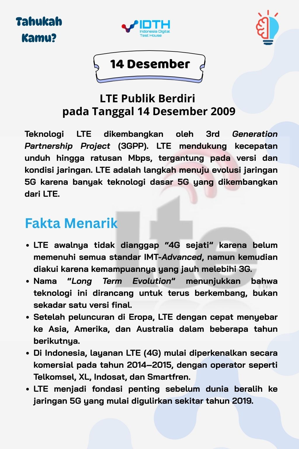 Teknologi LTE dikembangkan oleh 3rd Generation Partnership Project (3GPP). LTE adalah langkah menuju evolusi jaringan 5G karena banyak teknologi dasar 5G yang dikembangkan dari LTE.