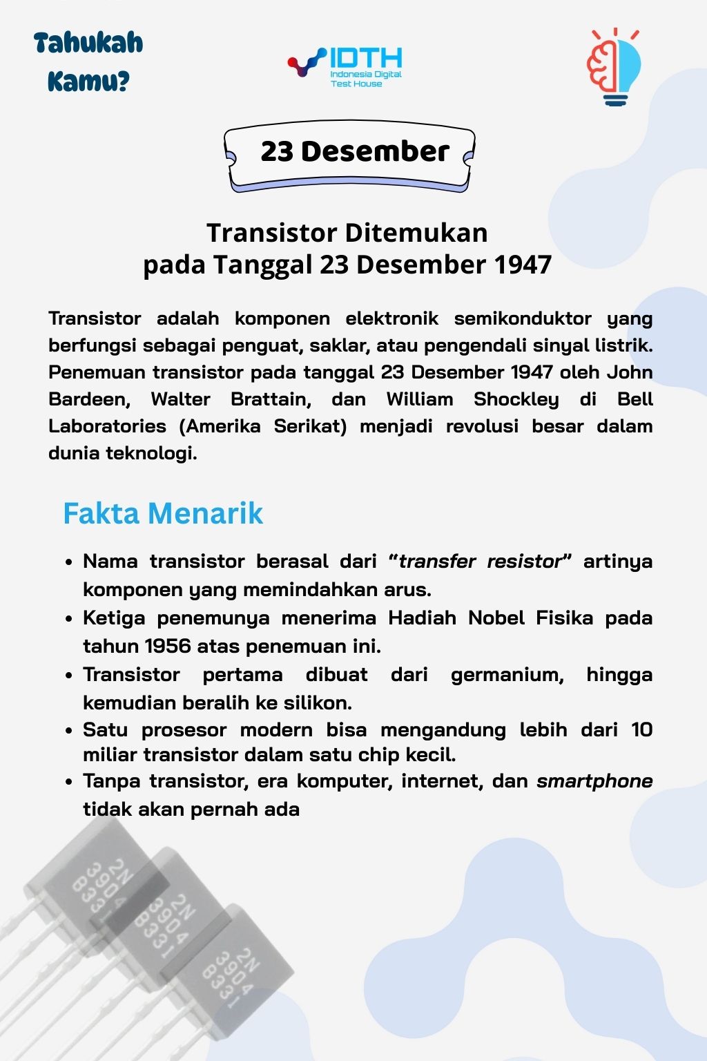 Tanggal 23 Desember 1947 Transistor Ditemukan