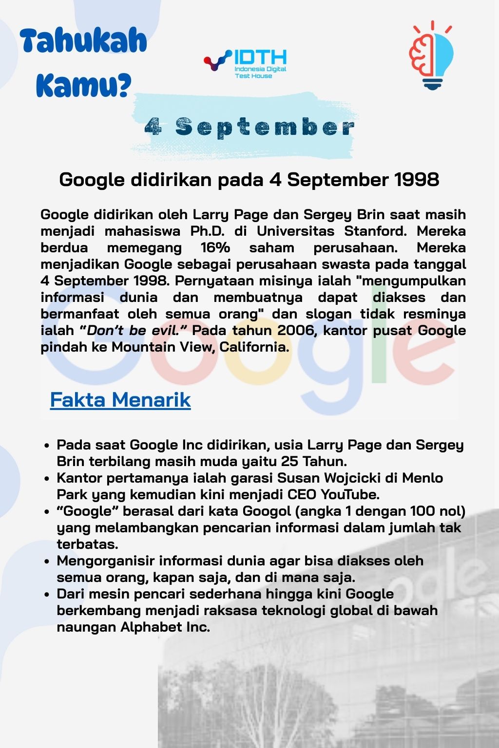 Google didirikan oleh Larry Page dan Sergey Brin saat masih menjadi mahasiswa Ph.D. di Universitas S...